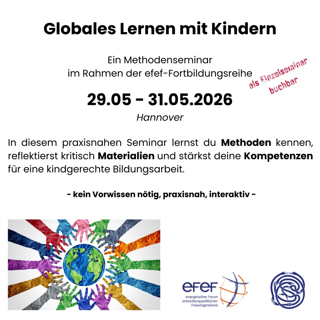 Das Seminar befähigt dich dazu, Globales Lernen mit Kindern im Alter vom Kindergarten bis zur Grundschule altersgerecht umzusetzen. Ziel ist es, Sicherheit und Kreativität für die eigene Praxis in der Arbeit mit Kindern zu gewinnen und dein eigenes methodisches Repertoire zu erweitern.